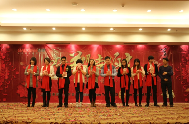 緊接著董事長為優秀員工父母頒獎,感謝他們培育出優秀的人才。向總對所有辛勤付出的高更家人表示了衷心的感謝,并期待2015年在所有家人眾志成城、同舟共濟、齊心協力的奮斗下創造翻一番的業績。