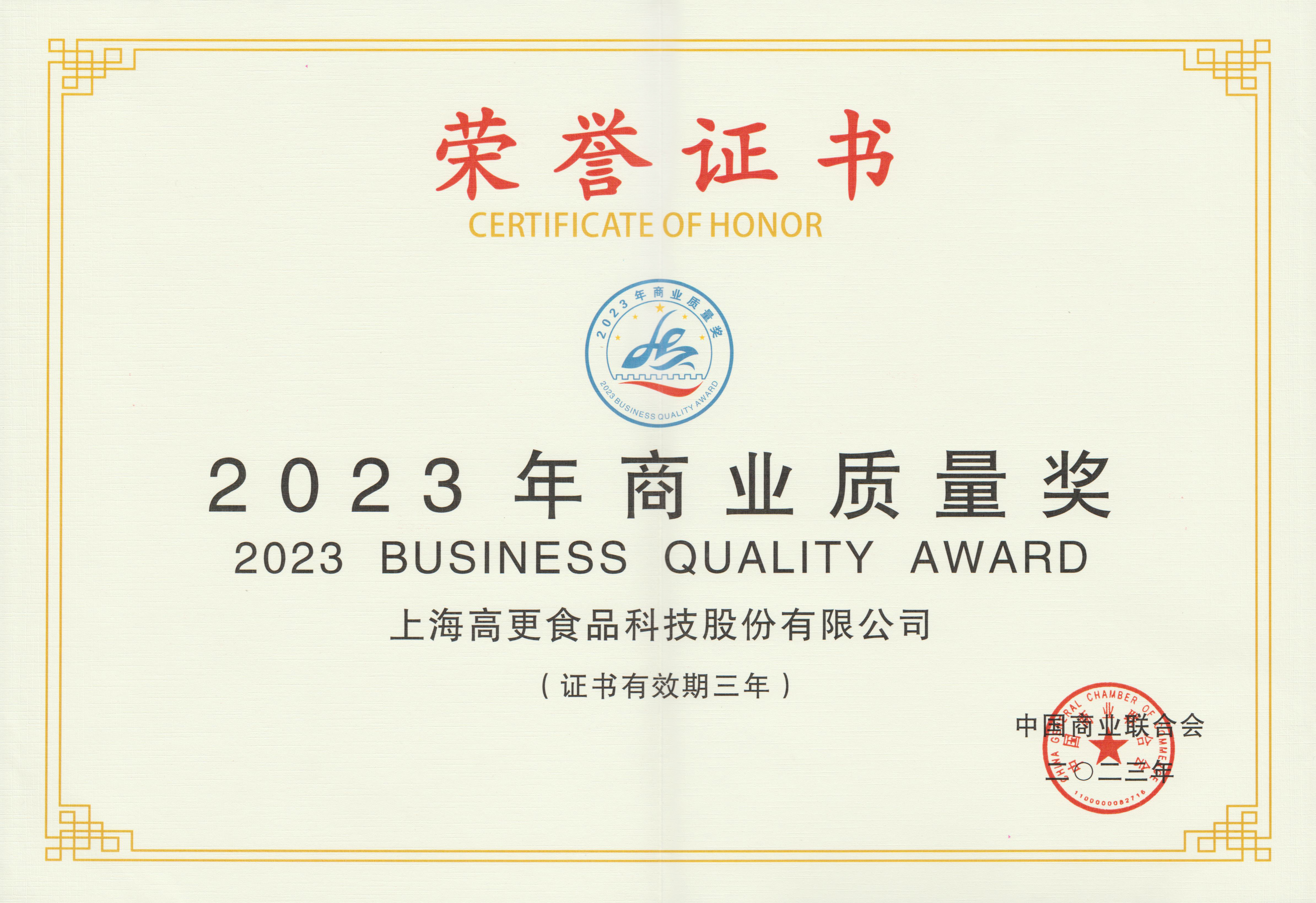 此次榮獲“全國商業質量獎”充分展現了高更股份的質量管控實力,是國家對我司質量管理模式的高度認可。食品安全管理體系是企業管理中的重中之重,保證產品的高品質,生產過程的高質量,是高更股份一直以來的核心要求。